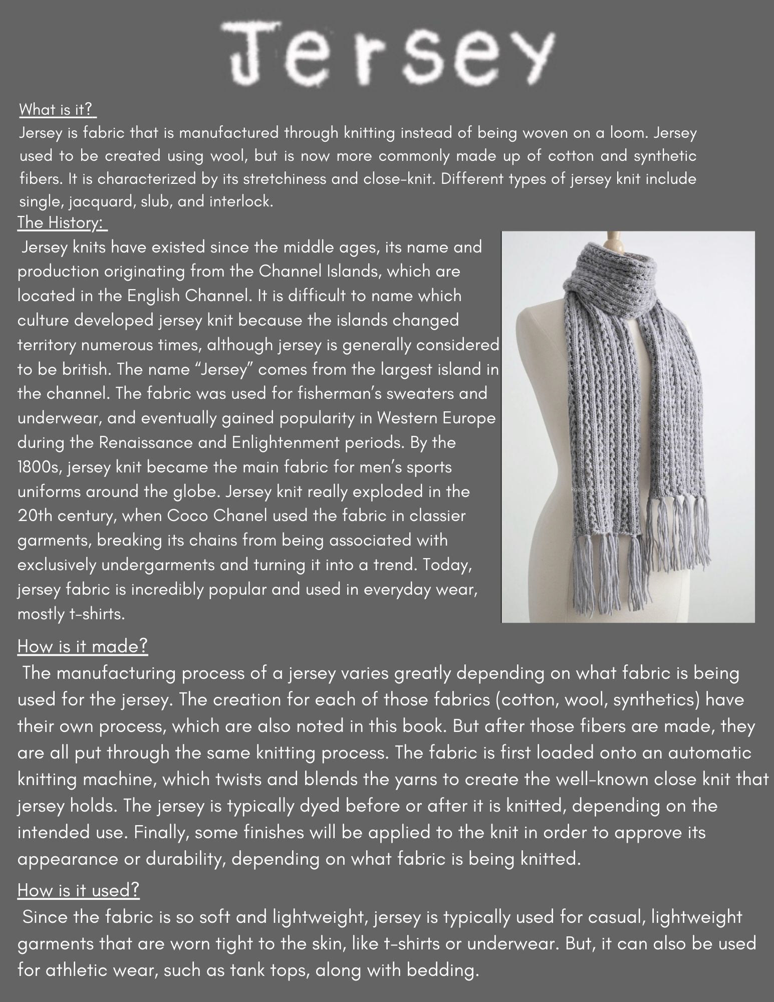 This research book outlines the fundamentals of textile knowledge, with fabric swatches sourced from Mood Fabrics. scroll down to see the physical book!